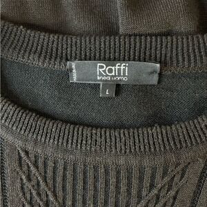Raffi Linea Uomo Brown Black Classic Merino Wool Blend Crew Neck Sweater Size L