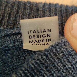 Raffi Men Blue V-neck Sweater LARGE 100% EXTRA FINE MERINO WOOL Pullover Italian