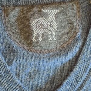 Raffi Men's - Blue V-neck Sweater, LARGE 100% EXTRA FINE MERINO WOOL Pullover, Italian design. Excellent Pre-owned Condition. Made from 100% Extrafine Merino Wool this luxury v-neck sweater has a lightweight feel that is an all-year-round must-have. The Bronson will not only add color to your wardrobe but also a refined sophistication.