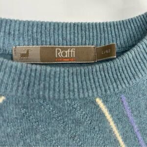 Raffi Men's Blue Argyle 100% Cashmere Sweater Size 52 Large Casual Preppy