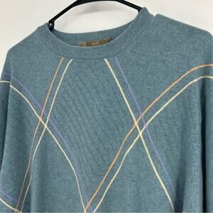 Raffi Men's Blue Argyle 100% Cashmere Sweater Size 52 which is a US Large Business Casual. VGUC no stains or holes. Minor pilling.