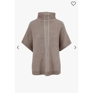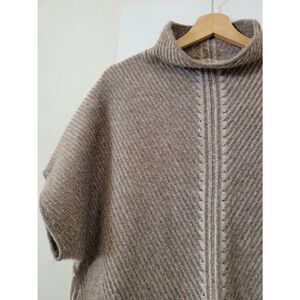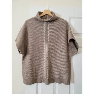 Raffi Taupe Wool & Cashmere Bias Rib Funnel Neck Sweater $255 S