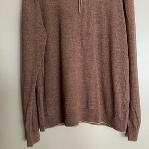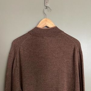 Raffi The Palmer, Pullover 100% Merino Wool Sweater, Size XXL, Long Sleeve, Quarter Zip, Mock Neck, Brown w/ Taupe Contrast