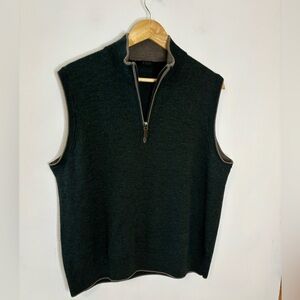 Raffi dark green 100% merino wool 1/4 zip sleeveless pullover sweater. Size XXL. Excellent condition. (U)
