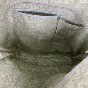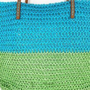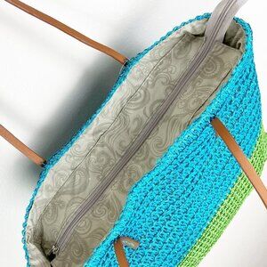 Perfectly fabricated for a beach vacation, the farmer's market, weekend errands, or a getaway, this tote bag features vegan leather handles and full zip top closure. A roomy main compartment gives open space with a small zip and open pocket for everyday essentials.