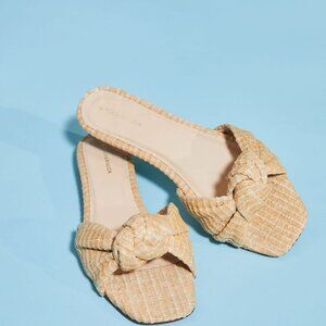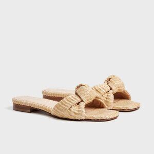 The Brit Sandals are a stylish and comfortable addition to your warm-weather wardrobe. Featuring a knotted strap made of natural raffia, these open toe slide-ons are perfect for casual outings and versatile enough to pair with shorts or maxi dresses.