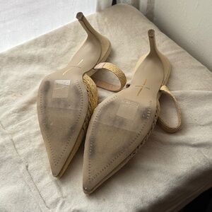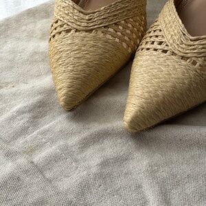 Natural Raffia backless heels from Dolce Vita. High, but not too high, dressy but with a casual or summery raffia material, slip on but snug enough to stay on. Sadly, as cute as these are they really are not my style so I'm getting rid of them to make more space for other shoes. Worn once.