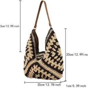 Features: Handmade with 100% natural Raffia yarn, this tote offers a unique, textured look. Perfect for casual days, beach trips, and travel. Lightweight but spacious, it fits all your essentials easily. Reinforced stitching and comfy shoulder straps make it durable and easy to carry.