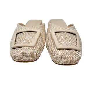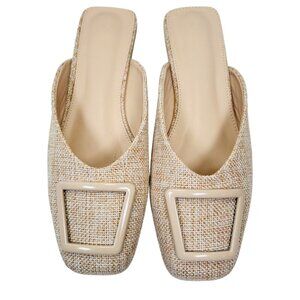 Raffia Square Toe Slide Size 6 Brunch Office Summer Coastal Holiday