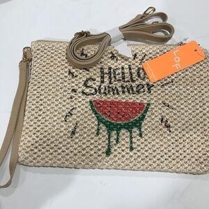 Raffia hello summer watermelon clutch Crossbody bag vacation beach NWT