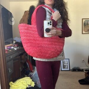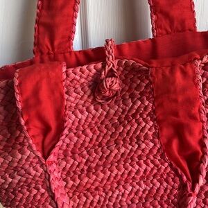 Raffia red shoulder bag with large compartment and small pocket great condition