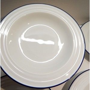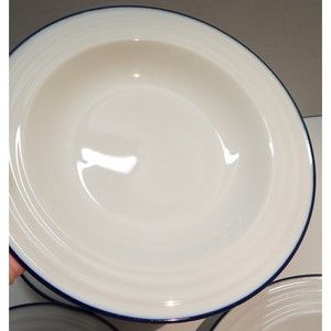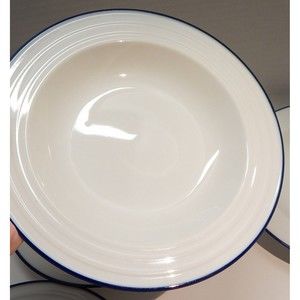Raffine Sigma Fine Porcelain Soup Bowl Raised Detail Blue Rim Japan Set of 4