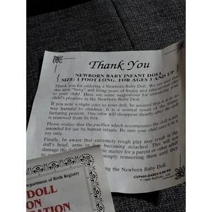 Raffoler Babyville Newborn Girl Doll W/ Birth Certificate