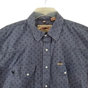 Rafter C Cowboy Collection Shirt Mens XL Pearl Snap Blue Gray Mandela AOP L/S