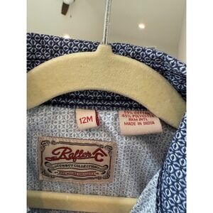 Keywords: Rafter C, Cowboy Collection, Western Style, Bodysuit, Baby Boy, 12M, Geometric Pattern, Long Sleeve, One Piece, Baby Clothes, Infant Wear, Toddler Clothing, Retro, Vintage Inspired