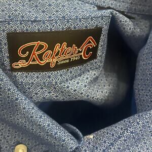 Rafter C Shirt Men XXL Blue Geometric Western Long Sleeve Button Cowboy Concert