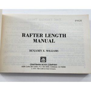 Rafter Length Manual by Williams, Benjamin Craftsman Book Company Paperback 1988.