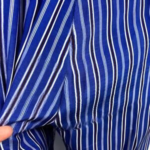 Condition: 8" tear on inner thigh seam, plus pulling of pattern/material all across front and back mid-section; spots on front shin area; small snags throughout.