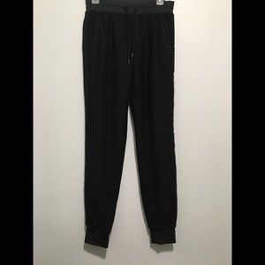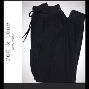 Rag & Bone Joggers Track Pants Drawstring Women's Black Mesh Joggers Bottoms Excellent Preowned Condition! Slightly pilling at the waistband Drawstring Back Pocket Welted front pockets Ribbing at Waist and Cuffs, 80% polyester/20% elastane 100% lined. No trades