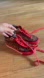 Leopard print sneakers with bold red laces and soles. Stylish and eye-catching design.