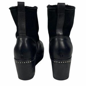 Leather and shearling upper Pull on Stud detail Platform w/ block heel Black Stamped a Women’s Size 37.5 Boots are preowned in gently used condition. Slight scuffs on toes…see detailed pics. They are super soft and comfortable, you’ll love ‘em!!