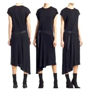 Rag And Bone Black Ophelia Dress Size S Knit Asymmetrical Hem Midi Belt