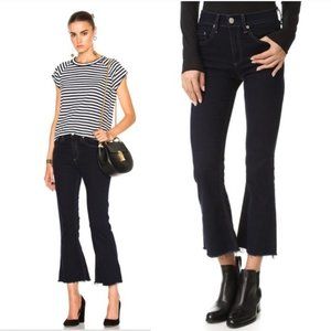 Rag & Bone 10” Crop Flare Fray Hem Dark Wash Dune. Excellent used condition. Size 24.