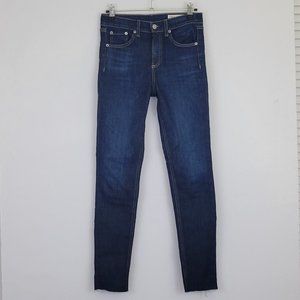 Women's Rag & Bone skinny ankle jeans, size 24. They are in excellent condition showing minimal wear overall. No defects or alterations. There is a small pen mark on the inside of the waistband.