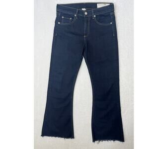 Rag & Bone 10 In Crop Flare DUNE Dark Wash Raw Hem Clean Girl sz 28 Made in USA
