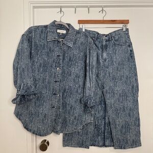 Cool, vintage-inspired vibes with that classic Rag & Bone edge. This oversized acid wash denim shirt is effortless, structured, and the perfect staple for any wardrobe. Wear it solo, layer it, or pair it with the matching Clara midi skirt (check my closet)!