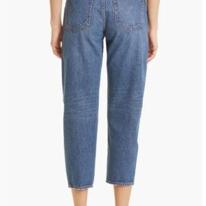 These barrel-leg jeans with a high waist are defined by a sharp taper and cropped hems that frame the ankle, perfect for flaunting your favorite footwear.