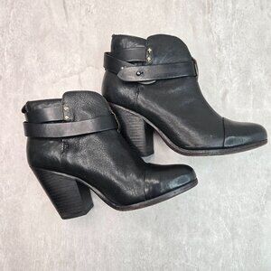 Rag & Bone Ankle Boots Womens Size 6.5 Black Leather Edgy Moto Block Heel Bootie