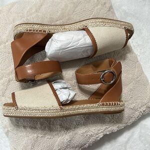 Rag & Bone Anteros Leather Espadrille Flats Tan Canvas Size 10 | NWT