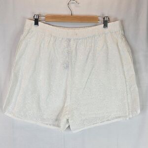 Rag & Bone April White eyelet Lined Pull On Cotton Shorts sz L Elastic Waist