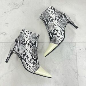 Italian Leather | Slim Stiletto Ankle Boot | Side Zip Closure | Pointed Toe | Snake Skin Print