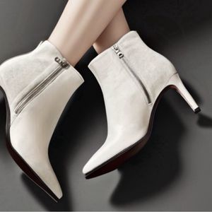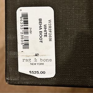 Rag & Bone Beha Leather Stiletto Ankle Boot Size 10 EU Size 40 Color: White New in box MSRP $525 A leather and suede slim stiletto ankle boot. Side zip closure Leather & suede upper Leather lining Leather sole Approx heel height: 3.15” Made in Italy You will receive one pair. The pair in the majority of the photos is the pair you will receive.