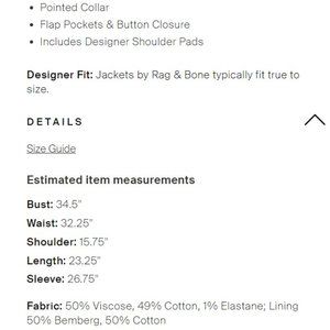 Rag & Bone Black 2-Button Blazer Fits Size 0 and Size 2