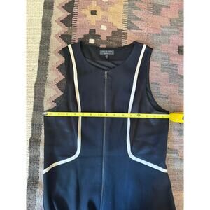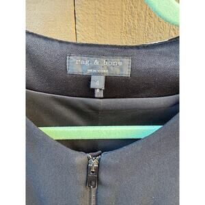 A full-length front zipper, stark contrast trim contouring from front to back and a clean A-line silhouette all add up to one killer dress with sporty verve. 37" length (size 8). Lined. 82% triacetate, 18% polyester. Dry clean. By rag & bone; made in the USA.