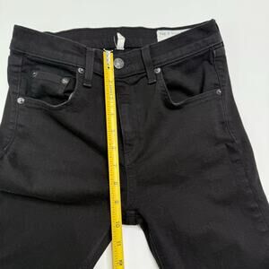 These Rag & Bone Black Jeans in size 26 feature a 10 inch Capri Cropped style with a destroyed hem, offering a trendy and stylish look. The jeans have a zip and button closure, a dark fabric wash, and a mid-rise fit for a comfortable and flattering silhouette. With a cropped inseam of 24 inches, these jeans are perfect for a casual yet chic style, and the brand's reputation for quality and style is evident in this wardrobe staple.