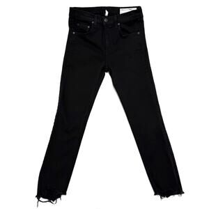 Rag & Bone Black Jeans 10 inch Capri Cropped Destroyed Hem Size 26 Hampton