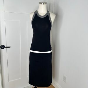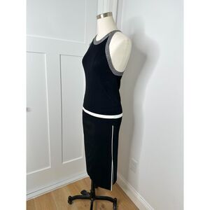 Rag & Bone Black Knit Set – Silver Trim Tank (S) & Piped Midi Skirt (M)