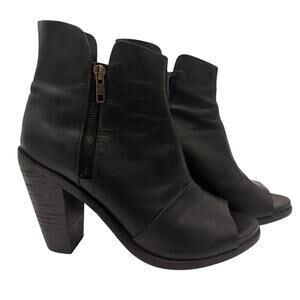 Rag & Bone Black Noelle Peep Toe Leather Ankle Booties Size 39 / 9