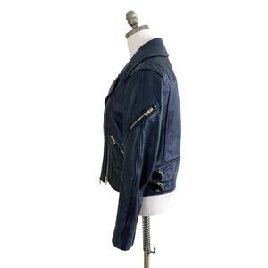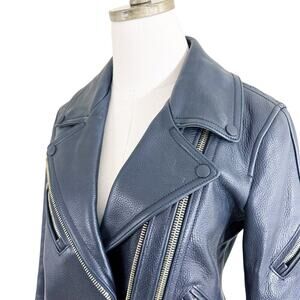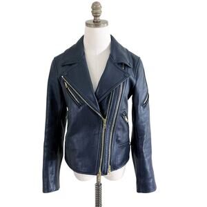 Rag & Bone Black Pebbled Leather Biker Jacket Women's Sz 6 Zip Up Many Pockets