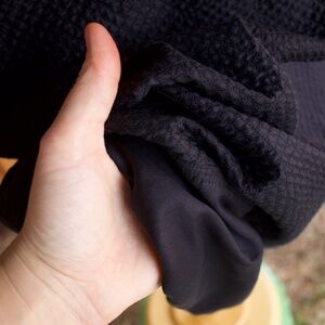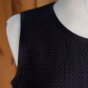 Perfect condition, no flaws to note. Black quilted sleeveless dress, ideal for layering during the colder months. Shift style, which pairs perfectly with so many things. Silver zipper detail down most of the back, scoop neck.