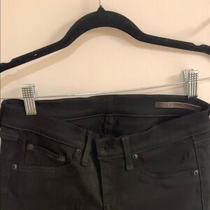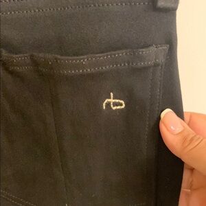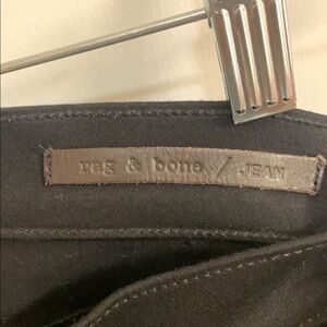Experience the sleek and modern design of these Rag & Bone black jeans. Crafted with a smooth, stretch fabric, they offer a comfortable fit and a polished look. Perfect for any occasion, these jeans are a wardrobe essential for a contemporary style. The pants are cotton blend with Lamb Leather accents. They are unique!