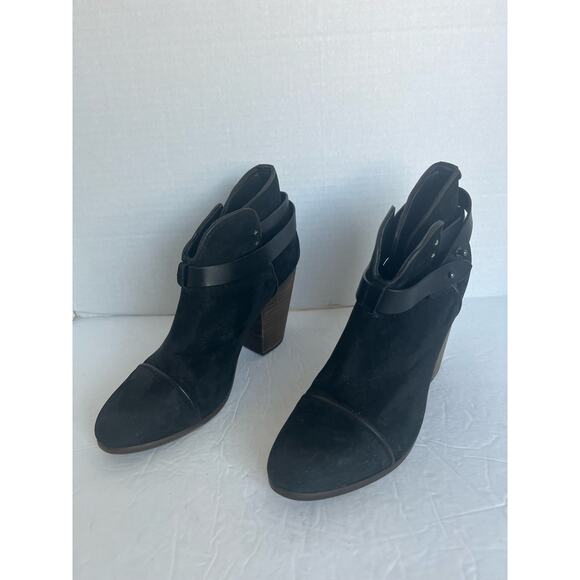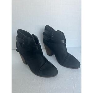Rag & Bone Black Suede Leather Almond Toe Ankle Bootie Boots Block Cuban Heel
