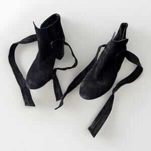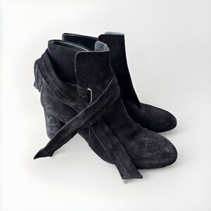 Rag & Bone Black Suede Wrap Booties Size 7.5 Heeled Boots 38
