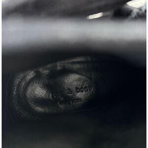 These Rag & Bone Black Suede Wrap Booties are stylish heeled boots in size 7.5 (UK 5.5, EU 38). With a mid-height block heel and ankle shaft style, they feature a tie closure for a secure fit. The black suede material, leather lining, and cushioned insole provide comfort, while the outsole is made of leather for durability. This versatile pair is perfect for both party occasions and casual wear, with a bohemian city theme adding to their unique appeal. Made in Italy, these booties from the renowned rag & bone brand offer a chic and fashionable addition to any wardrobe.