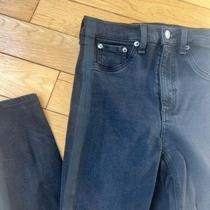 Rag & Bone "washed black" tuxedo stripe jean. High Rise Ankle Skinny With Black Tape. 50% Modal, 41.5% cotton, 6% polyester, 2% spandex, Size 27. Soooo cute! Very high quality. Worn only a couple of times. In perfect condition.
