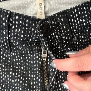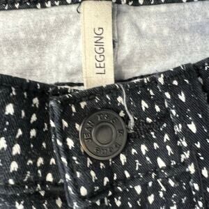 Rag & Bone “Beachwood” leggings in a subtle black-and-white pattern. Lightweight, super-stretch denim with faux front pockets, functional back pockets, and a zip/button closure. 96% cotton, 4% Roica for comfort and flexibility.